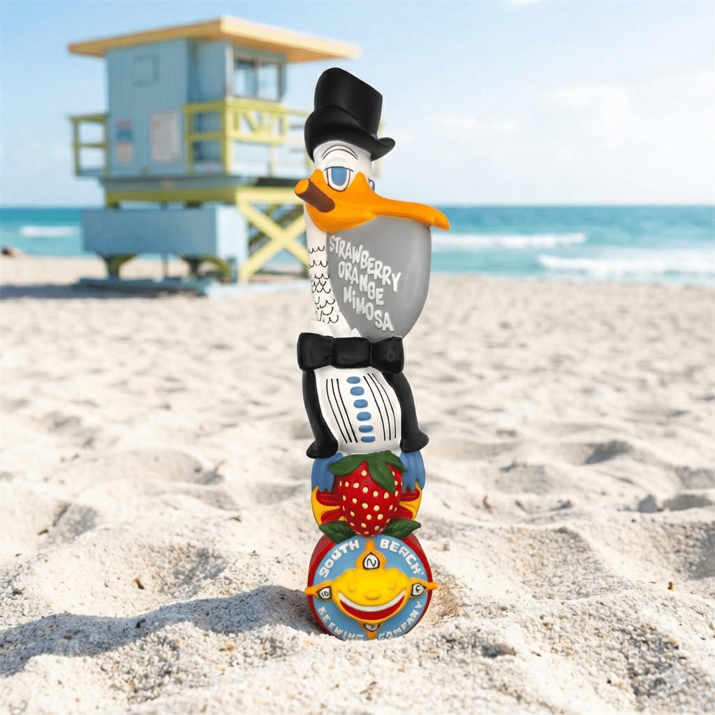 Our signature Mimosa Brunch Beer character, this dapper pelican was designed by David “LEBO” Lebatard for SBBC. Feature on your home kegerator or display on one of our custom-made tap stands!