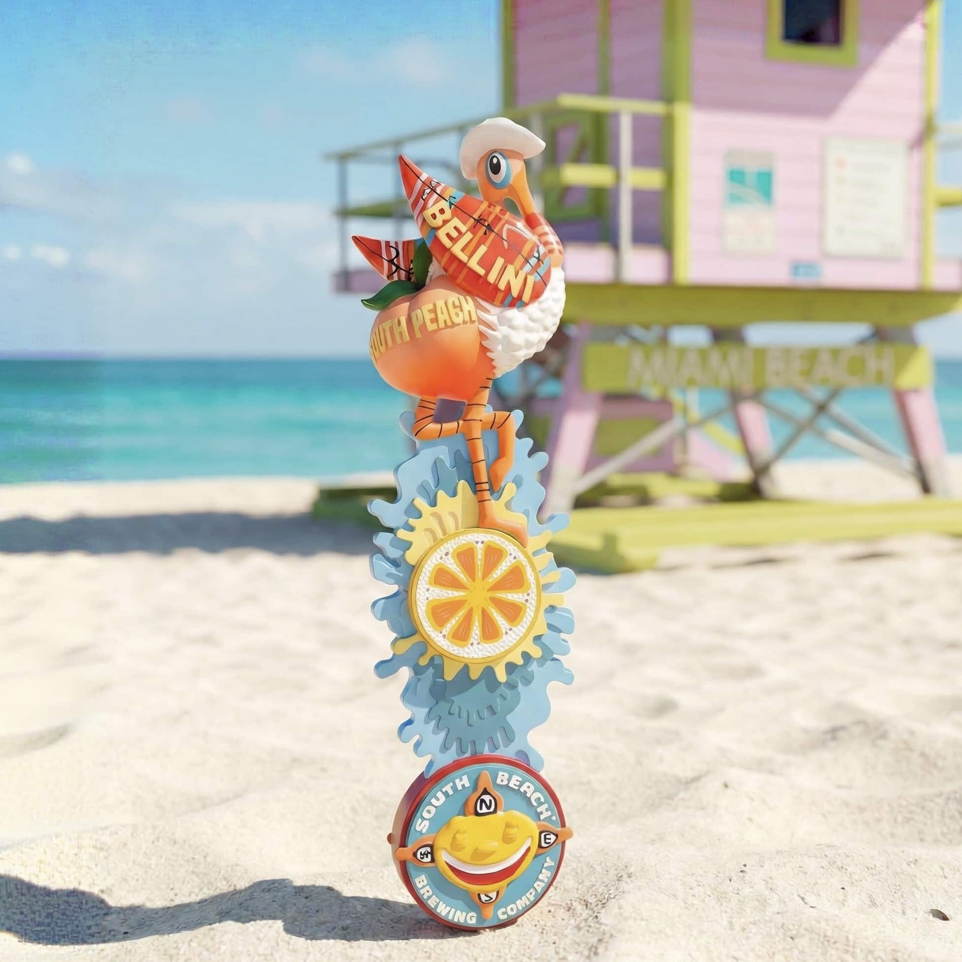 Our signature Bellini Brunch Beer character, this sassy Spoonbill was designed by David “LEBO” Lebatard for SBBC. Feature on your home kegerator or display on one of our custom-made tap stands!